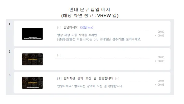 인트로 영상에서 안내 문구 제작(아래의 가이드 참고)