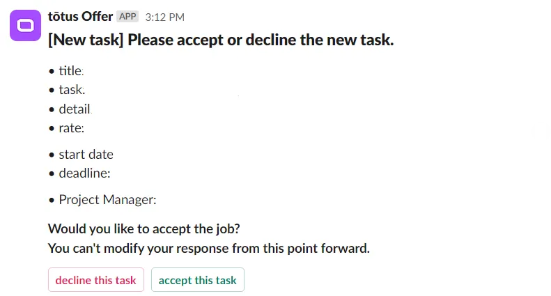 Task Assignment: You’ll receive an e-mail to ask whether accept or decline when you’re assigned a project.