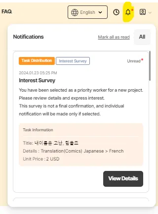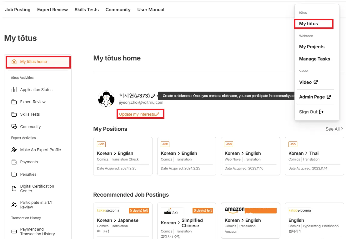 Tip: If you update what positions you are interested in (for example: Korean > English comics translation) you’ll be able to see relevant job positions!