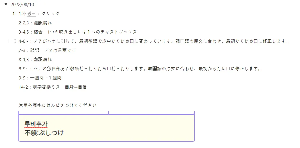 피드백을 번역가가 보고 개선이 되어야 검수 할 때 편합니다.