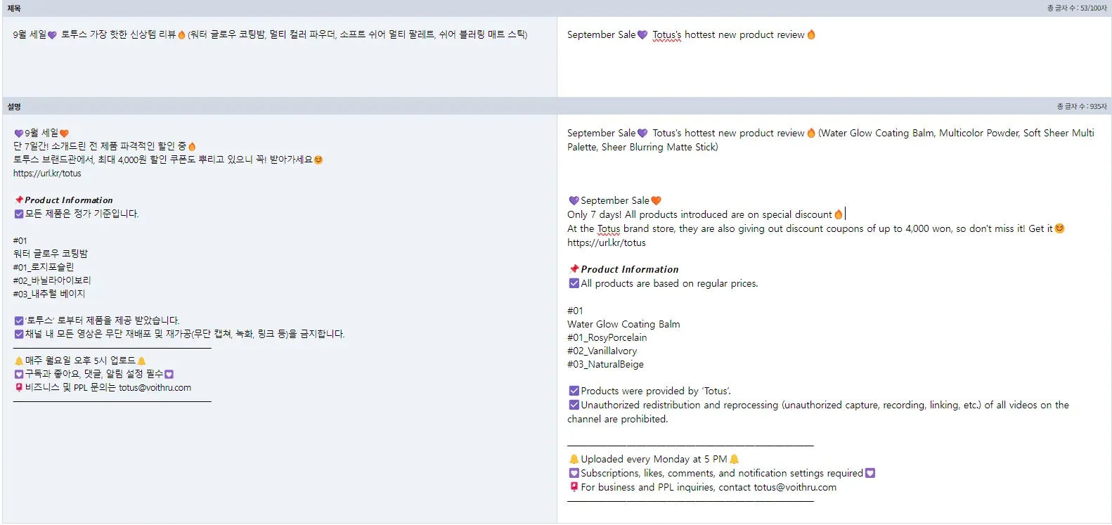 在充分理解视频内容的基础下翻译标题与说明栏的内容