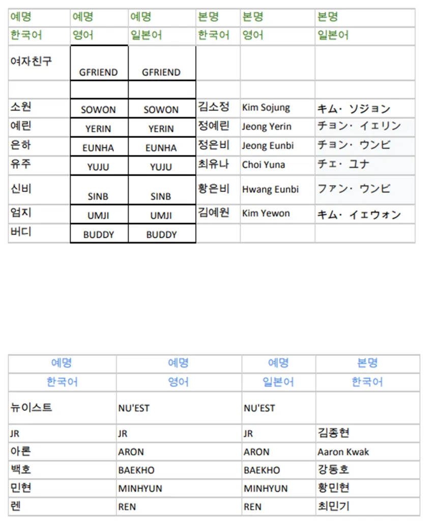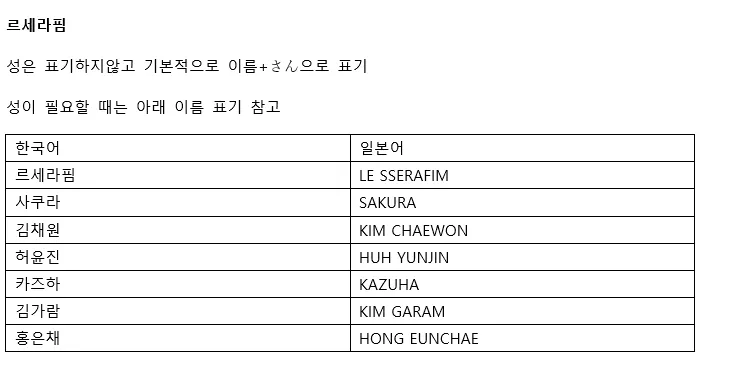 아티스트의 나이 고저를 막론하고 서로를 부를 때는 ”공식명さん”으로 표기할 것