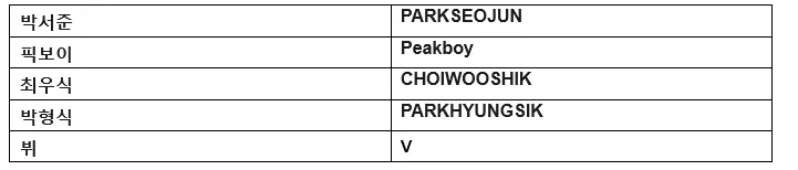 풀네임이 나올 경우에는 중간점 등이 없는 PARKSEOJUN으로 표기