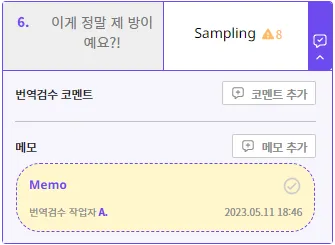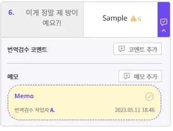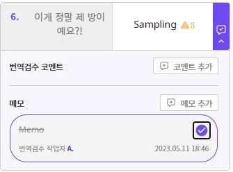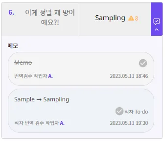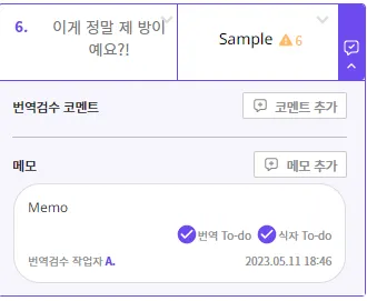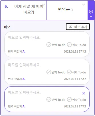※ 2023년 8월 3일 부터, 번역 검수 / 식자 번역 검수 단계에서는 ‘번역 To-do’ 기능을 사용할 수 없습니다.