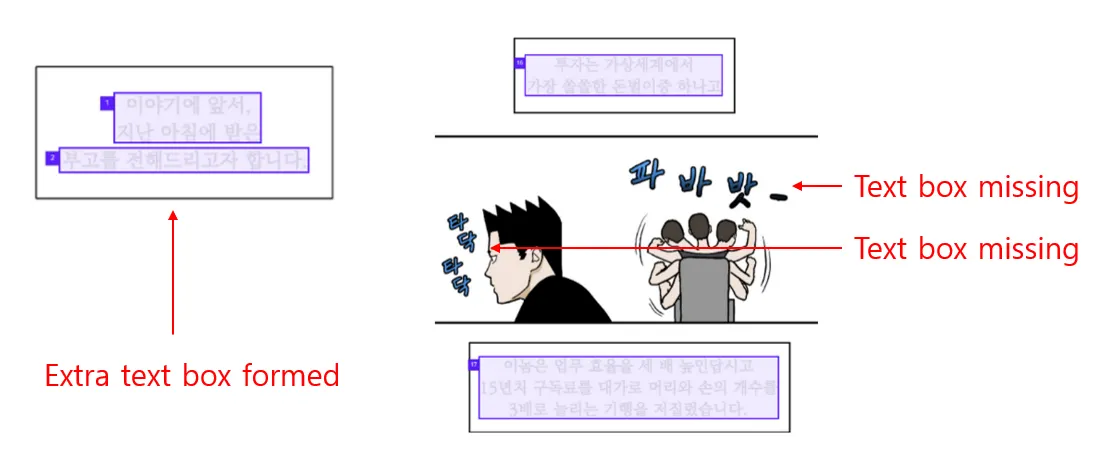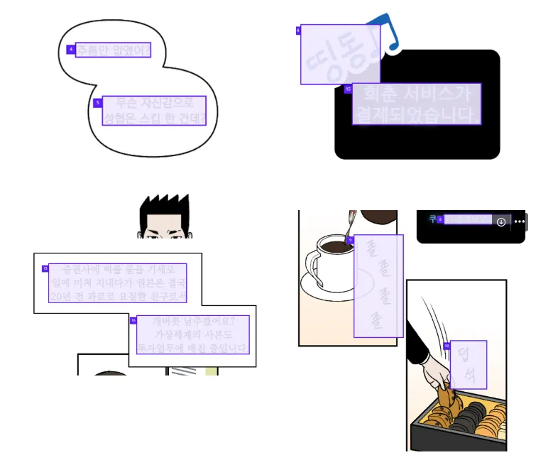 (1) One โtext boxโ is formed per unit of text in speech bubbles, narration boxes, sound effect/onomatopoeia, etc.