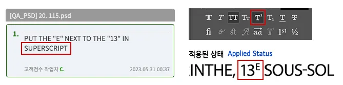Superscript 요청이 올 경우 문자 설정의 위 첨자(Superscript) 기능을 적용해주세요.