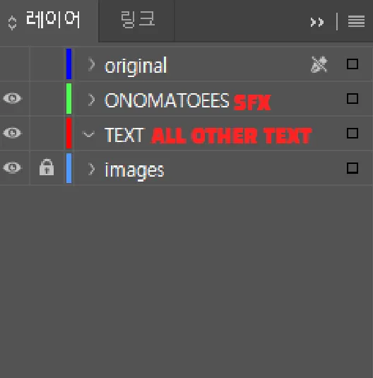 이후 검수 과정을 위해 반드시 원본의 모든 레이어가 살아 있는 original 파일을 만들어주세요. (납품 시 가시성 off 후 납품)