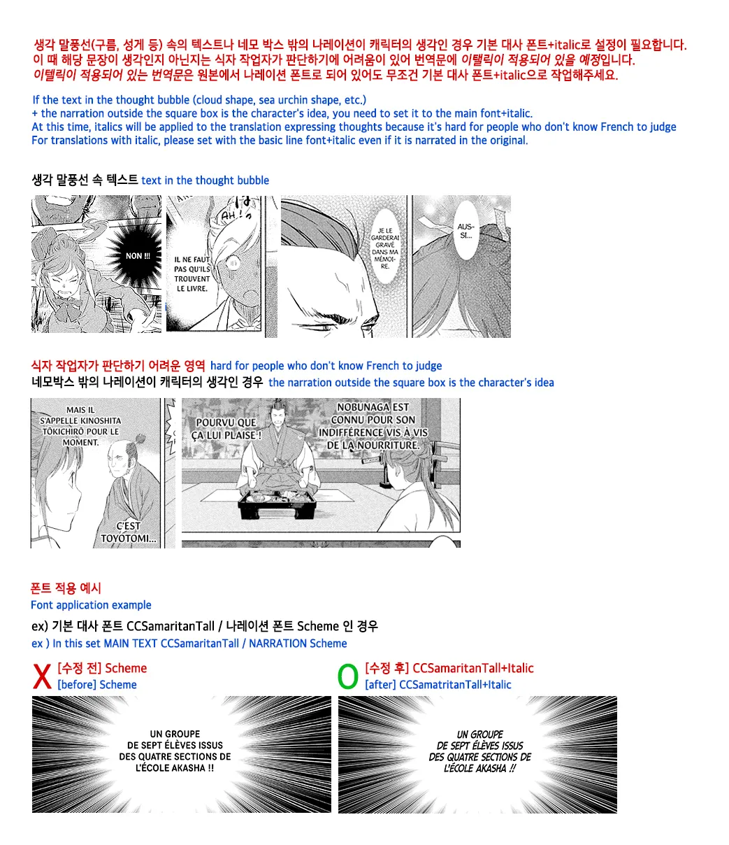 따라서 Italic이 적용된 번역문은 반드시 기본 대사 폰트+Italic 설정으로 작업해주세요.