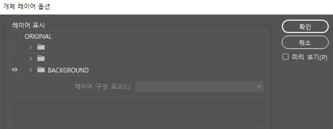 원본이 레이어가 분리된 PSD인 경우 개체 레이어 옵션에서 배경 레이어만 나타나도록 레이어 가시성을 조절해주세요.