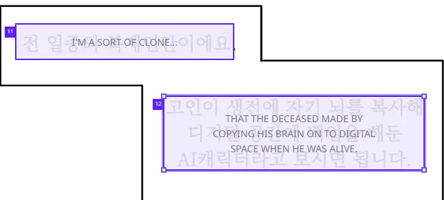 ← but if you stretchout the purple text box horizontally, you can see that there are no line breaks and the translated text is in one single line.