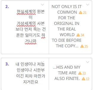 (Above example is merely a point of reference and fake. And it is for Korean-to-English translation. The format of each story note may differ depending on the series or client.)
