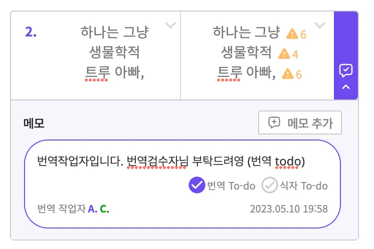 Check “번역 To-do” when you leave a memo for your translation checker