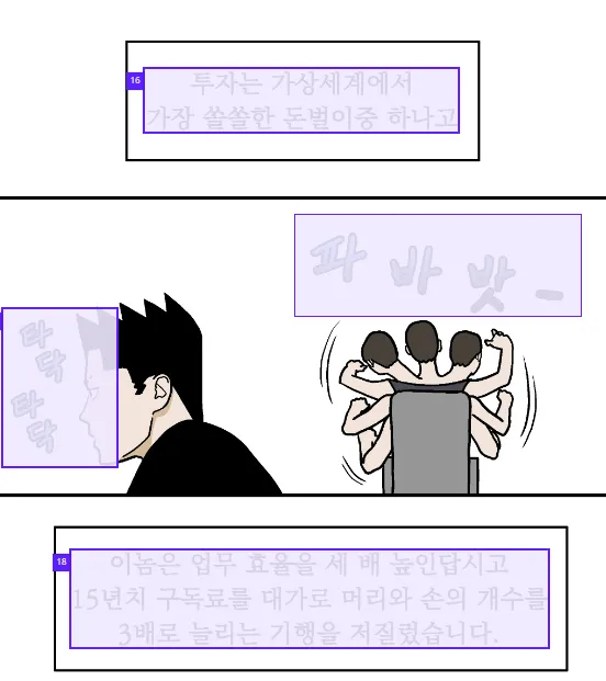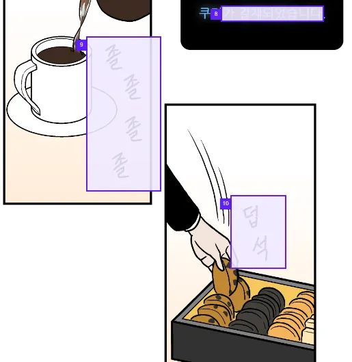 One “text box” is formed per unit of text in speech bubbles, narration boxes, sound effect/onomatopoeia, etc.