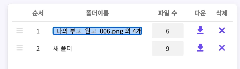 파일 순서 변경하기 : 파일 리스트 좌측 아이콘을 드래그하여 파일의 순서를 변경할 수 있습니다.