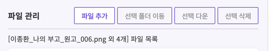 파일 추가하기 : [업로드 파일 관리] > 파일을 추가할 폴더 클릭하기 > [파일 추가]