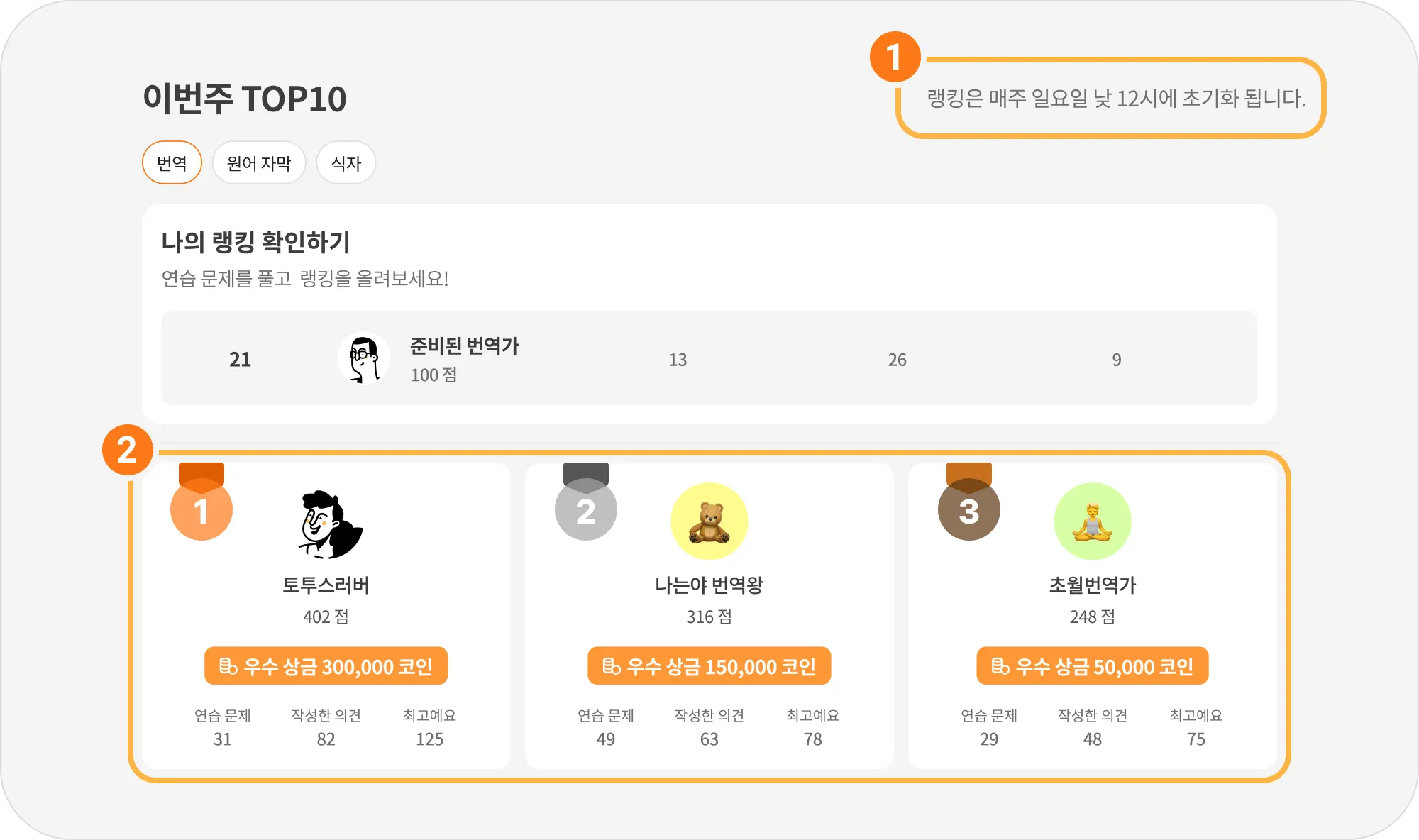 랭킹에 올라 상금 코인을 받으세요!