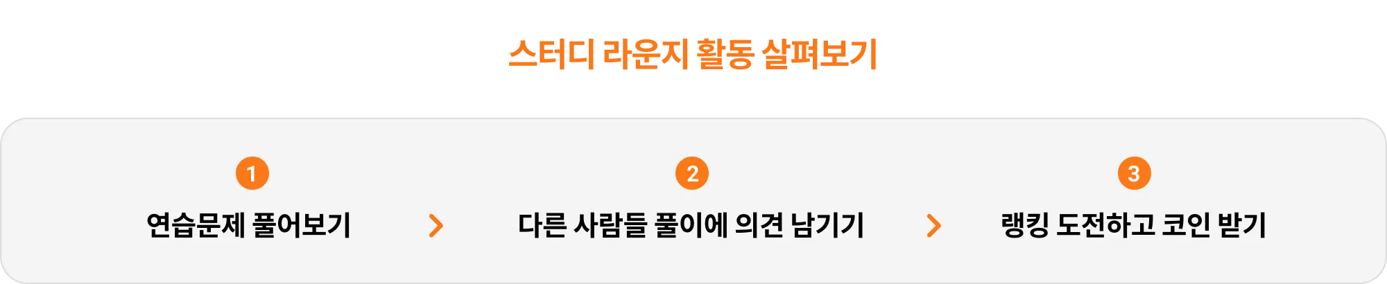 스터디 라운지는 연습 문제 풀고 다른 사람들과 의견을 나누며 배움의 기쁨을 함께 나눌 수 있는 공간입니다. 이용 방법을 참고하여 스터디 라운지를 유익하게 이용해 보세요.