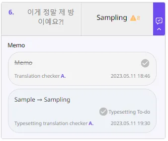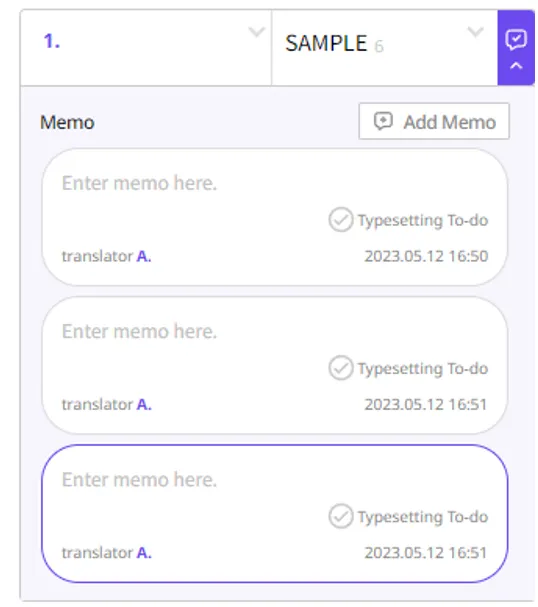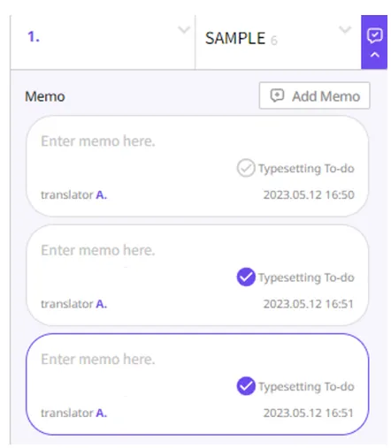When you make revisions in the translation, a memo tagging the typesetter will be automatically generated after you submit. (Do not add memos of your own after making revisions because memos will be in duplicates due to auto-generation.)
