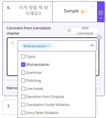 When adding comments, be sure to tag the type of error and fill in the relevant information. (Multiple selections are possible)