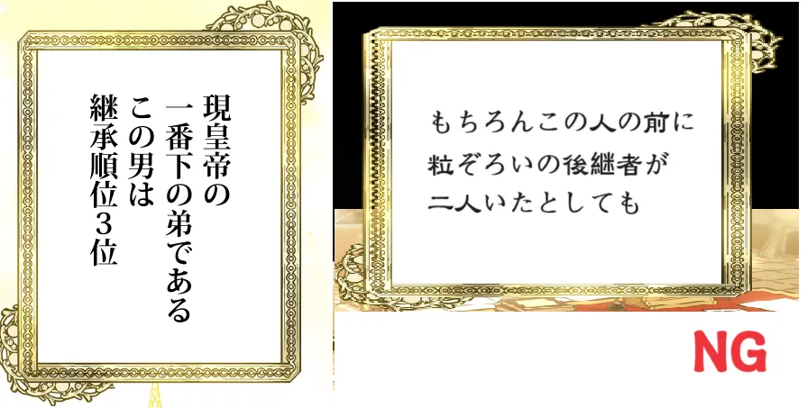 ご注意] 同じデザインのフレームが繰り返して登場する場合、フレーム内の整列(縦書き/横書き)を登場してください。