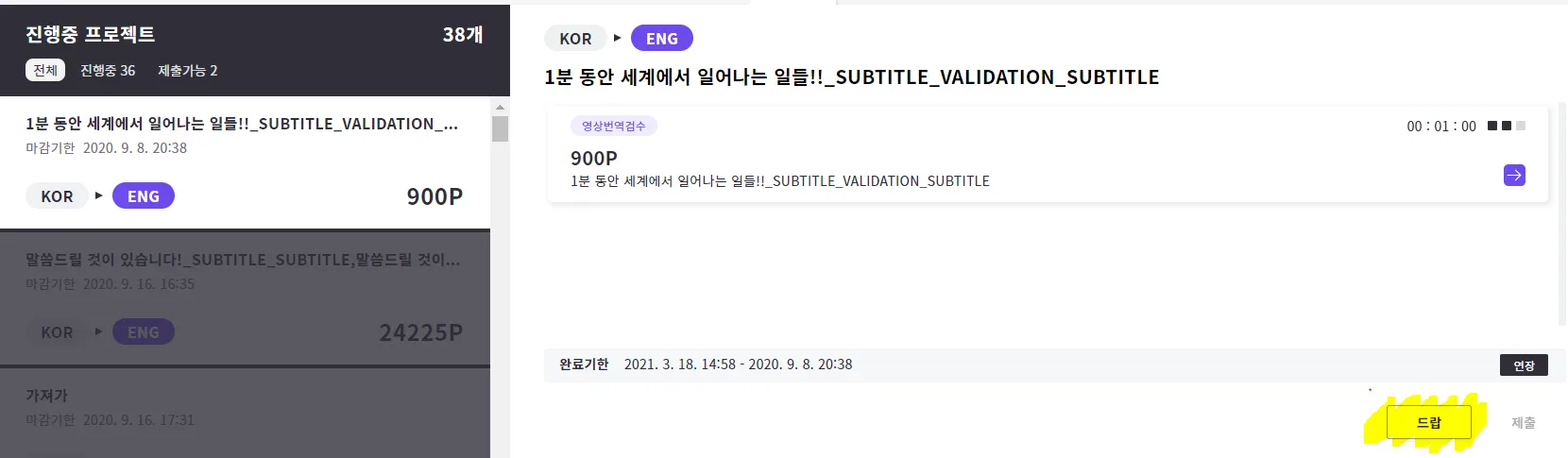 부득이한 사정으로 인해 프로젝트 수령 후 작업이 불가능하다면 수령 후 30분 이전 드랍 버튼을 클릭해주세요.