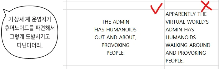 ・ 콘텐츠의 재미를 느낄 수 있도록 직역이 아닌 상황과 의도를 고려하여 의역해야 합니다.