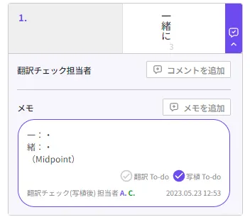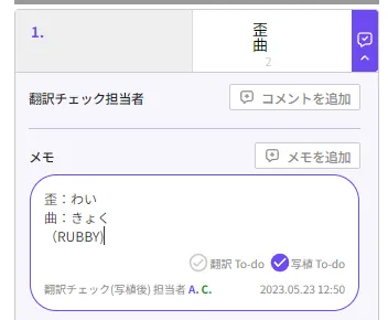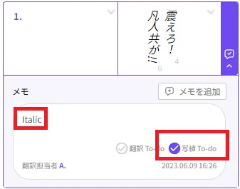 メモ機能にて写植To-do及びItalicと記載