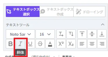 テキストツールにて斜体適用