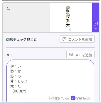 メモにルビに関する内容を記載