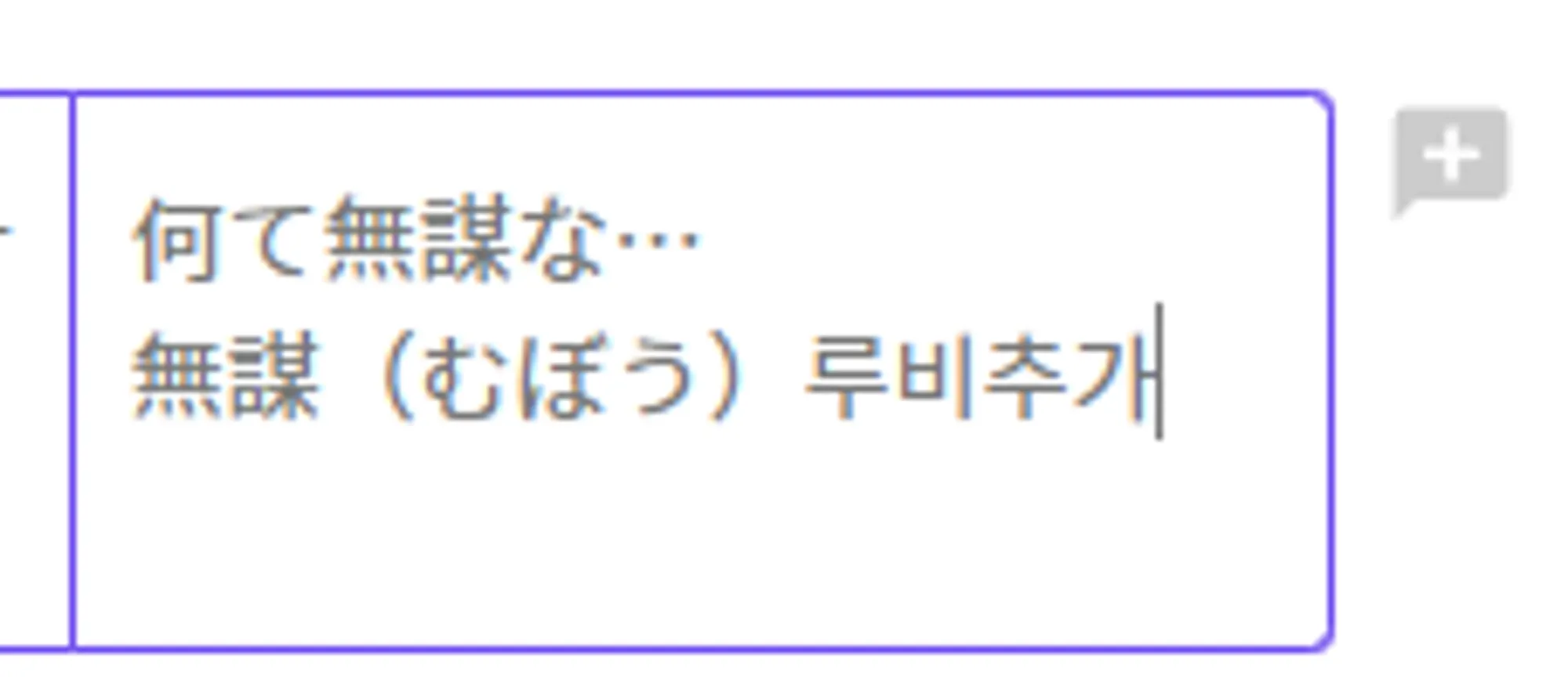 翻訳段階ではコメント機能がないのでテキストボックスに記載ください。