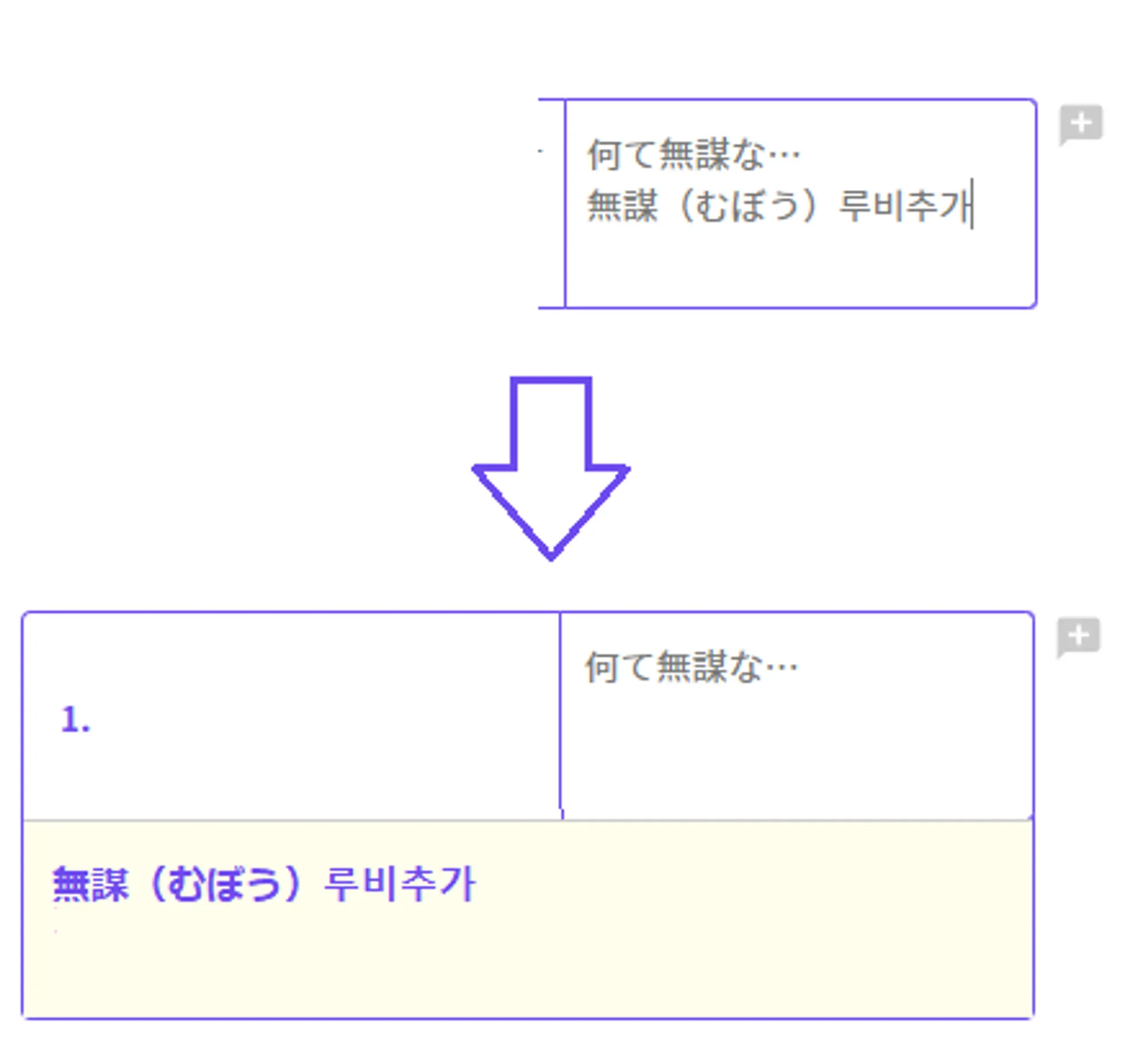 ※紫のテキストボックスはセリフの位置へと置いてください。