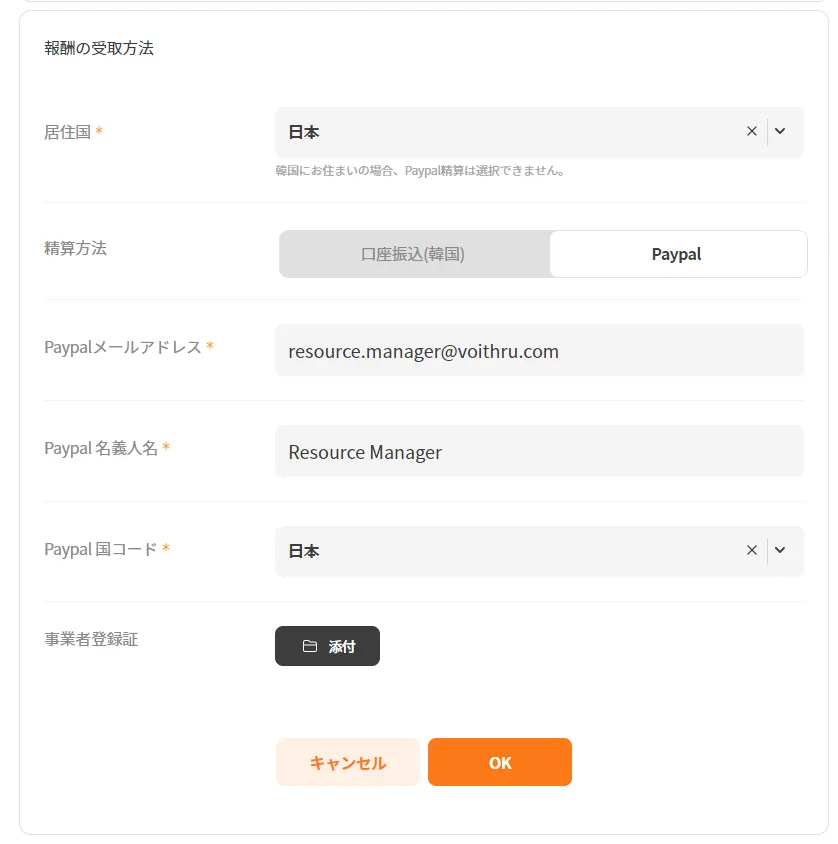 Paypal情報の登録