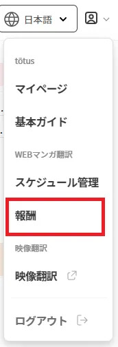 右上のプロフィールにある報酬をクリックします。