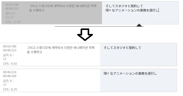 자막은 가독성을 위해 TC 분할을 해야 하는 경우가 있습니다.