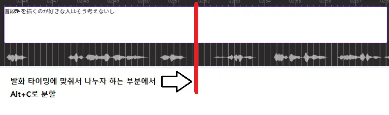 자막 한 줄이 길 경우 분할 후 발화 타이밍에 맞게 조절을 해주세요