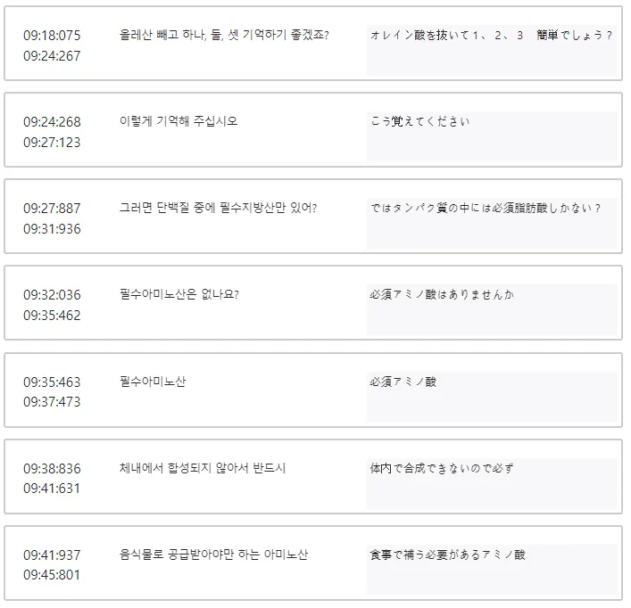 음성 + 화면 자막: 화자의 음성과 화면 텍스트가 동시에 출력되어 하나의 TC로 만든 자막