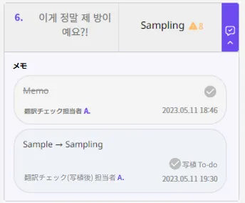 ※ 2023年8月3日から翻訳チェック/翻訳写植チェック段階で「翻訳To-do」機能を使用できなくなりました。