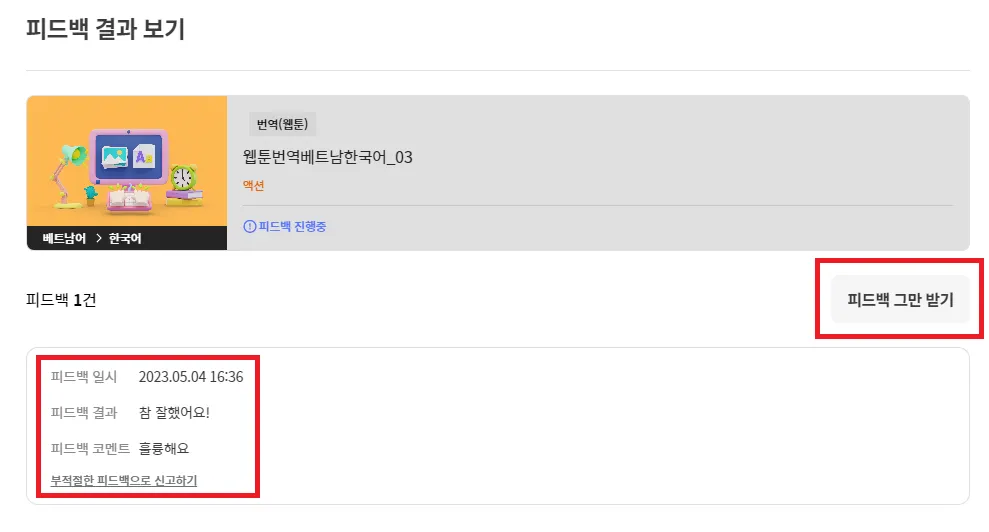 원하는 경우 [마이 챌린지] → [챌린지 결과] → [일반 피드백] → [피드백 결과보기]에서 피드백을 그만 받을 수 있어요