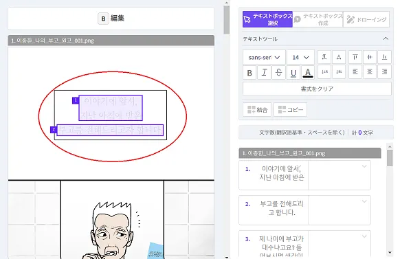画像ウィンドウの編集コラム上でテキストボックスを作成したい領域をドラックします。