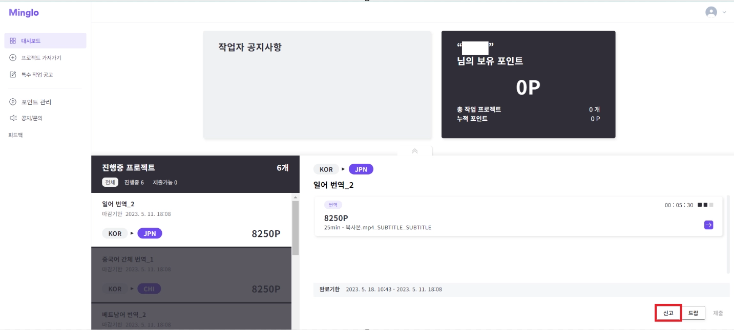 정산 예정 | 제출한 모든 작업에 대한 총 금액 |