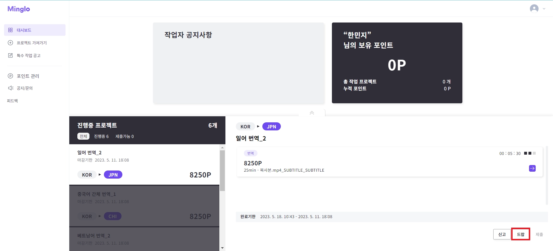 마감 기한 미준수로 인한 강제 드랍