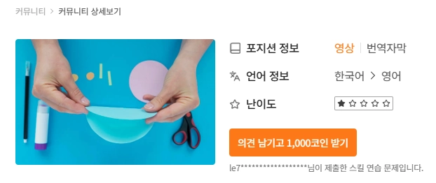 커뮤니티 의견 남기기 | 1,000 C | - 커뮤니티 페이지에서 다른 사람들 작업에 의견을 남기면 1건 당 1,000 코인 |