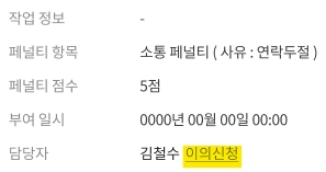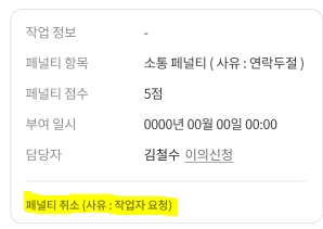 작업 마감 시간이 지났는데도 작업 시작을 하지 않을 경우 벌점 5점 부여