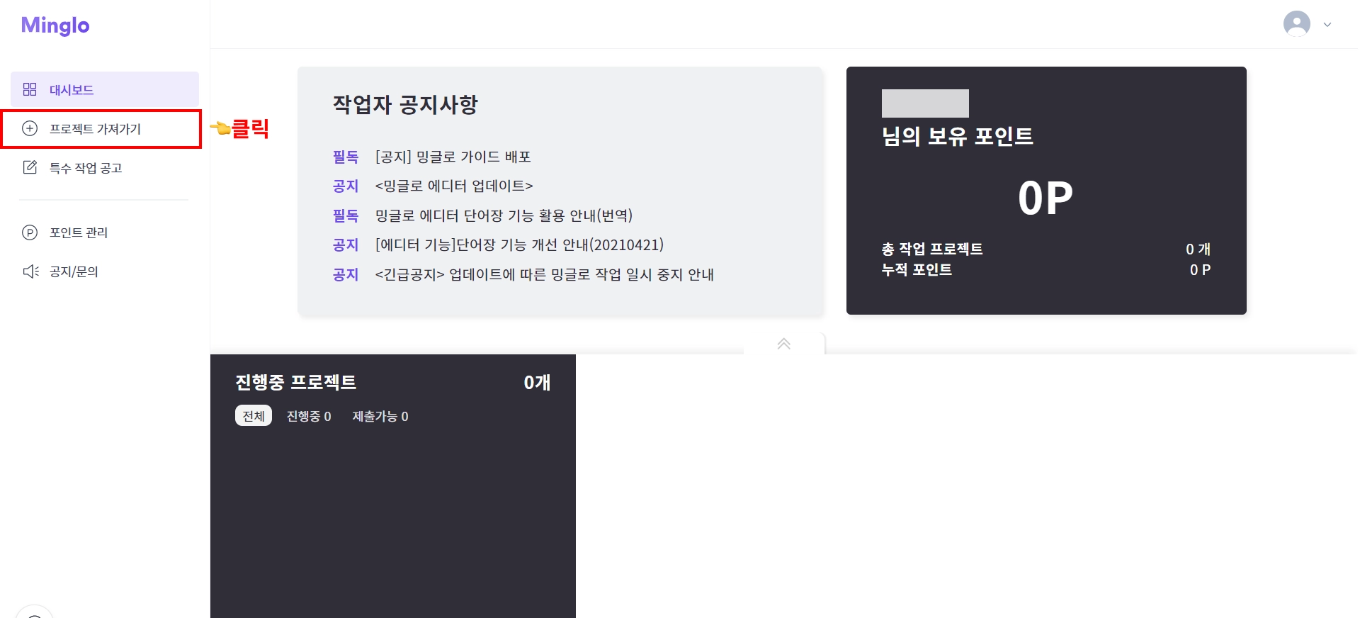 프리미엄 작업 공고는 프로젝트 성 공고로,